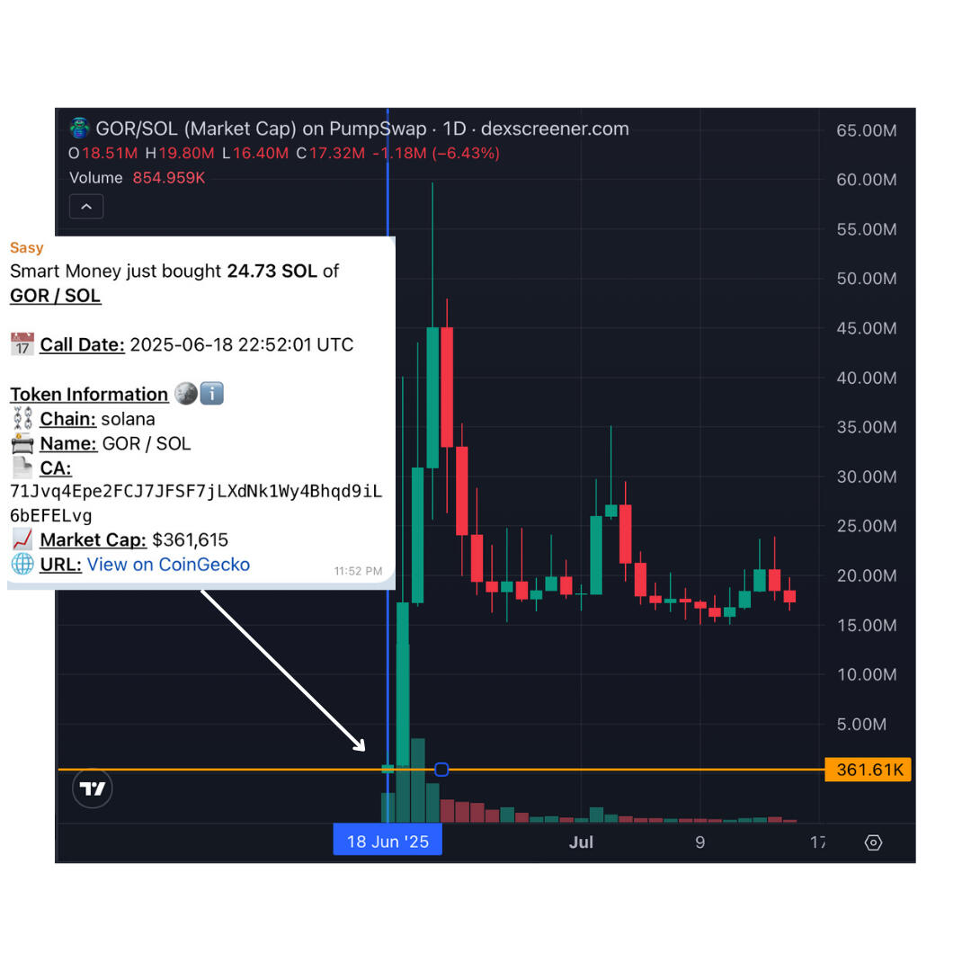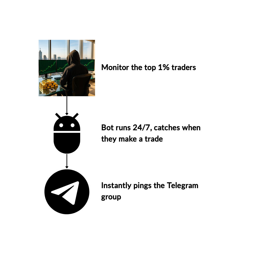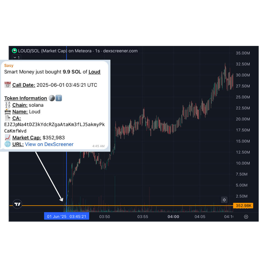 The telegram group has a bot that watches the Top 1% Solana Blockchain Traders (Smart Money) 24/7. The second a verified smart money wallet buys a token - you get notified a few seconds after1. Immediate Telegram alert (tx link + why it matters)2. Roughly 15 minutes of head-start before the noise hits X3. Nightly “alpha digest” recapping every high-signal move